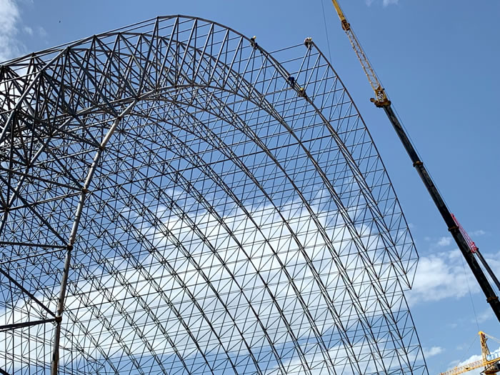 (2)网架加工前应对现场尺寸进行复测,确认无误后方可进行加工、安装;网架制作、运输、安装应遵守《空间网格结构技术规程》JGJ7-2010、《钢网架同江螺栓球节点》JG/T 10-2009、《钢网架同江螺栓球节点用高强度螺栓》 GB/T 16939-2016、《同江钢结构同江工程同江施工规范》 GB50755-2012、《同江钢结构同江工程同江施工质量验收标准》 GB50205-2020。